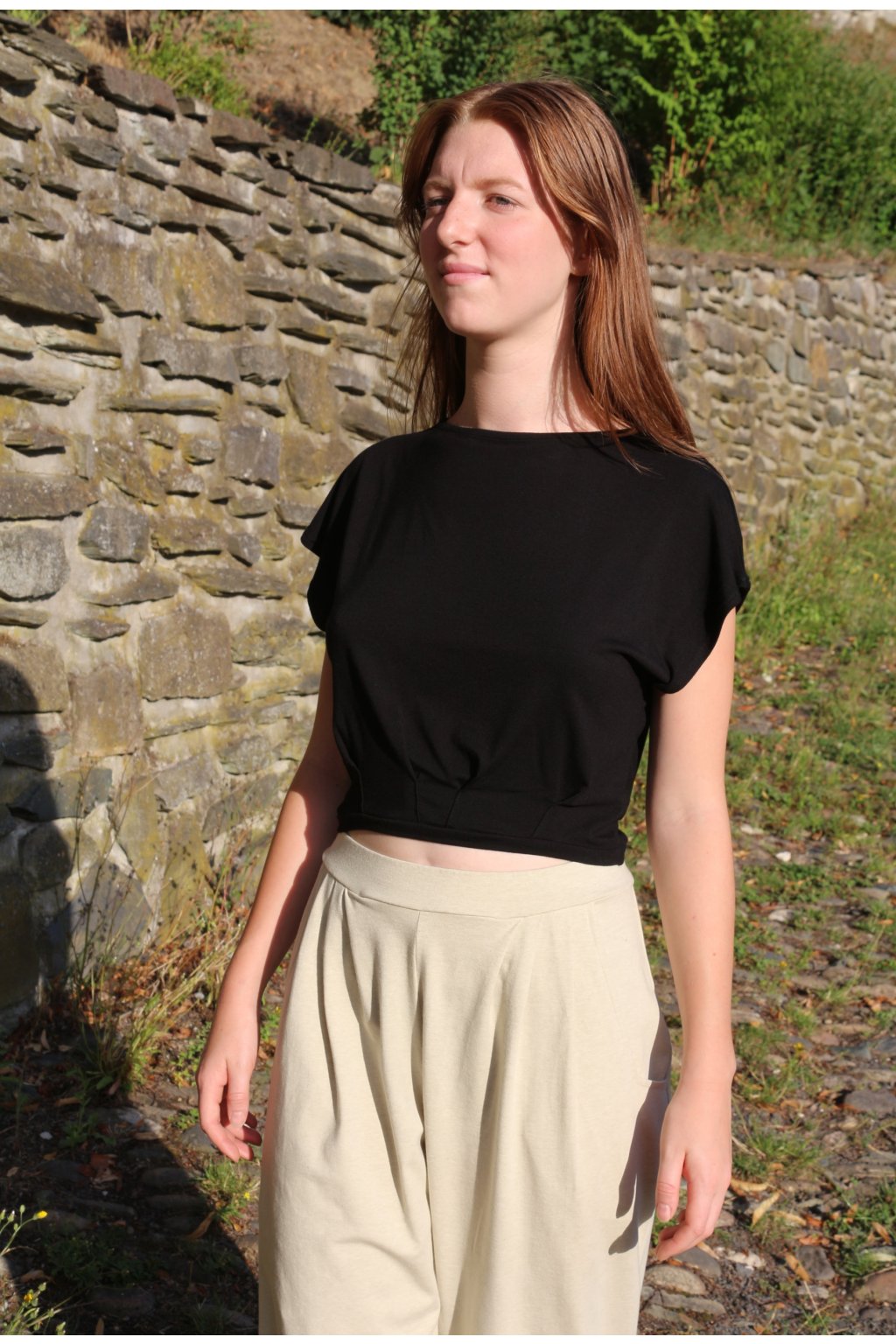 Kroptop šijeme v naší dílně z bambusu ( 95% bambusová viskóza + 5% elastan) nebo  z biobavlny s certifikací Gots s nebo bez elastanu.