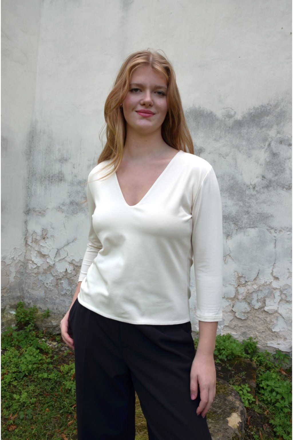 Triko šijeme ve smetanovém přirozeném odstínu biobavlny. V nabídce jsou i další nebarvené přirozené odstíny biobavlny - stone a oříškově hnědá. Jedinou barvenou biobavlněnou látkou je varianta - černá. Pokud chcete triko z bambusu, tedy pocitově tenčí a chladivější variantu, v nabídce je opět smetanový nebarvený odstín a další barevné barvené varianty. Všechny tyto barvené bambusové varianty jsou pouze na vyžádání.